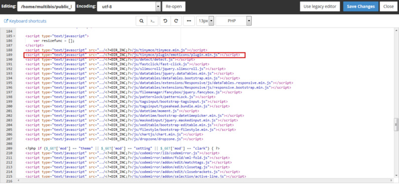 plugin.min.jsyang berada diroot_directory/po-includes/js/tinymce/plugins/emoticons/plugin.min.js - Pada file plugin.min.js terdapat kode script berikut: