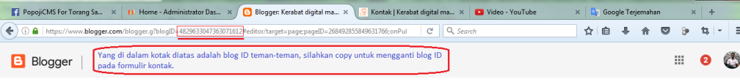 Kalimat dalam tanda petik yang berbunyi(Ganti ini dengan blog id), silahkan ganti dengan blog id teman-teman. Cara mendapatkan blog id silahkan lihat address bar dan lihat gambar address bar.